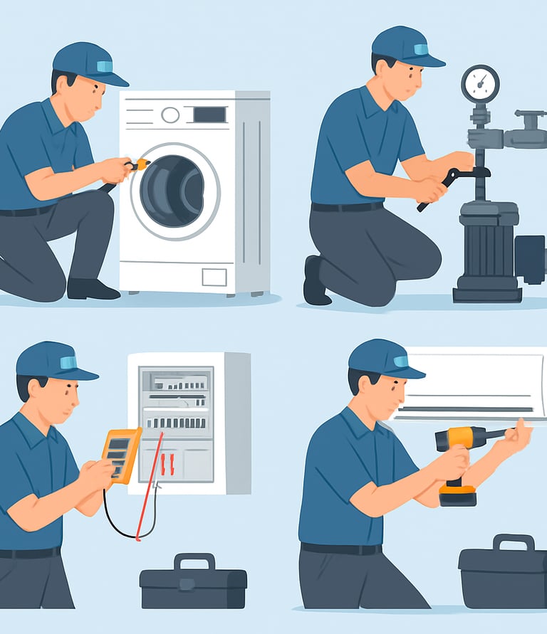 ช่างใจดีพร้อมดูแลซ่อมแซมเครื่องใช้ไฟฟ้าและปั๊มน้ำอย่างมืออาชีพ